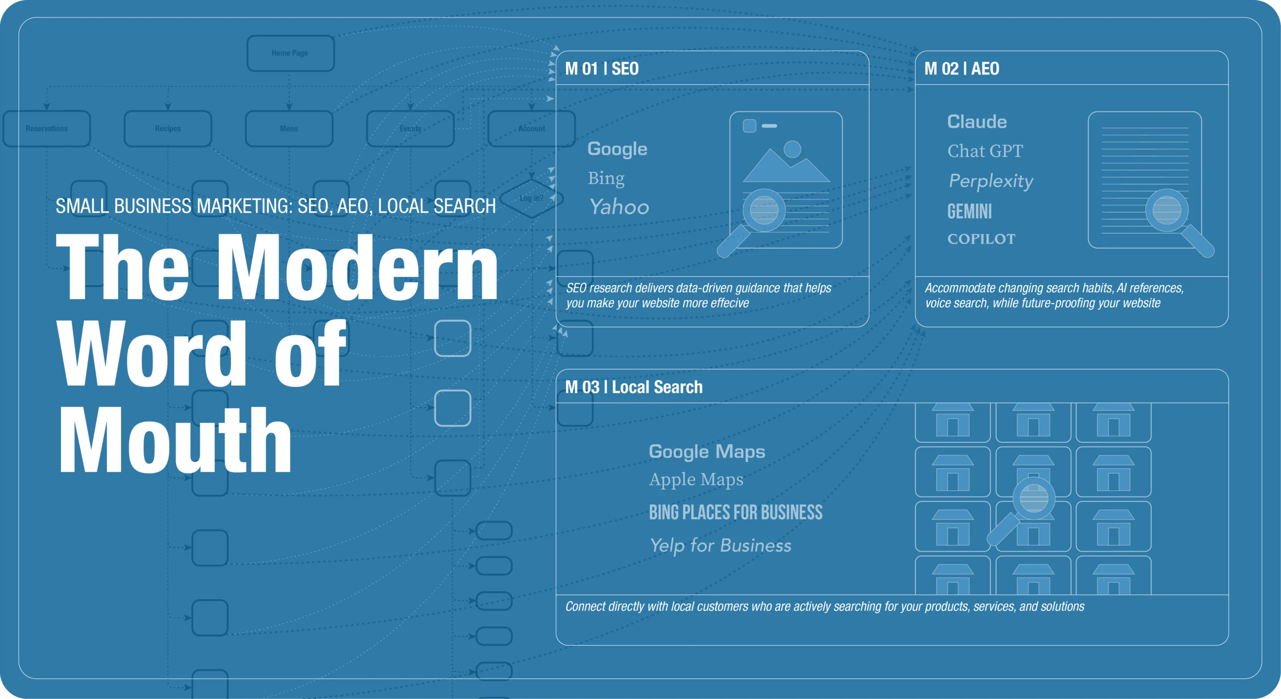 If your website isn’t being found, then you aren’t being found. This is a little harsh, but only a little. Customers will still find you the old-fashioned way, but much of your vibe and trust are built through SEO, AEO, and Local Search.